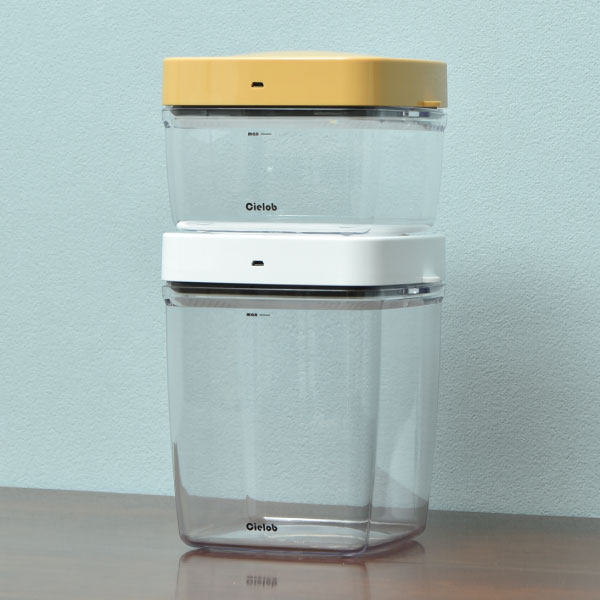 SIZE・COLOR サイズ・カラー おすすめアイテム 自動真空で新鮮を手軽にキープ Cielob 自動真空キャニスター 1.0L Cielob 自動真空キャニスター 2.5L シンプルでおしゃれなぬか漬けケース 密閉ぬか漬けケース 水取り器付タワー tower インテリアに馴染むおしゃれな米びつ 密閉米びつ タワー 10kg 計量カップ付タワー tower