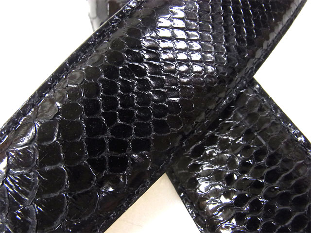 穴の数 5穴(2.5cm間隔) 素材 パイソン、牛革 カラー ブラック ご注文に関する注意点 素材に関して:※革は天然素材の為ひとつとして同じ物がありません。